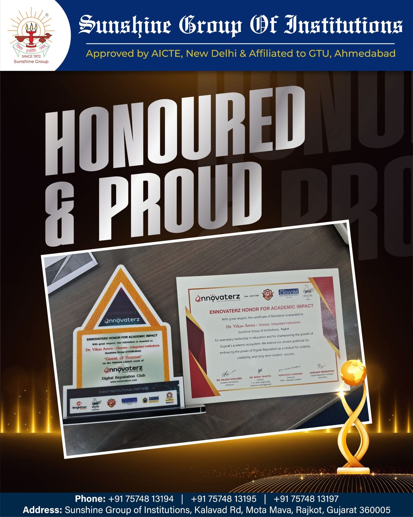 I feel Fortunate enough to have high level of professional education and learning from Sunshine Group of Institutions.I am very thankful to all the faculty members of SGI for their guidance and support.
