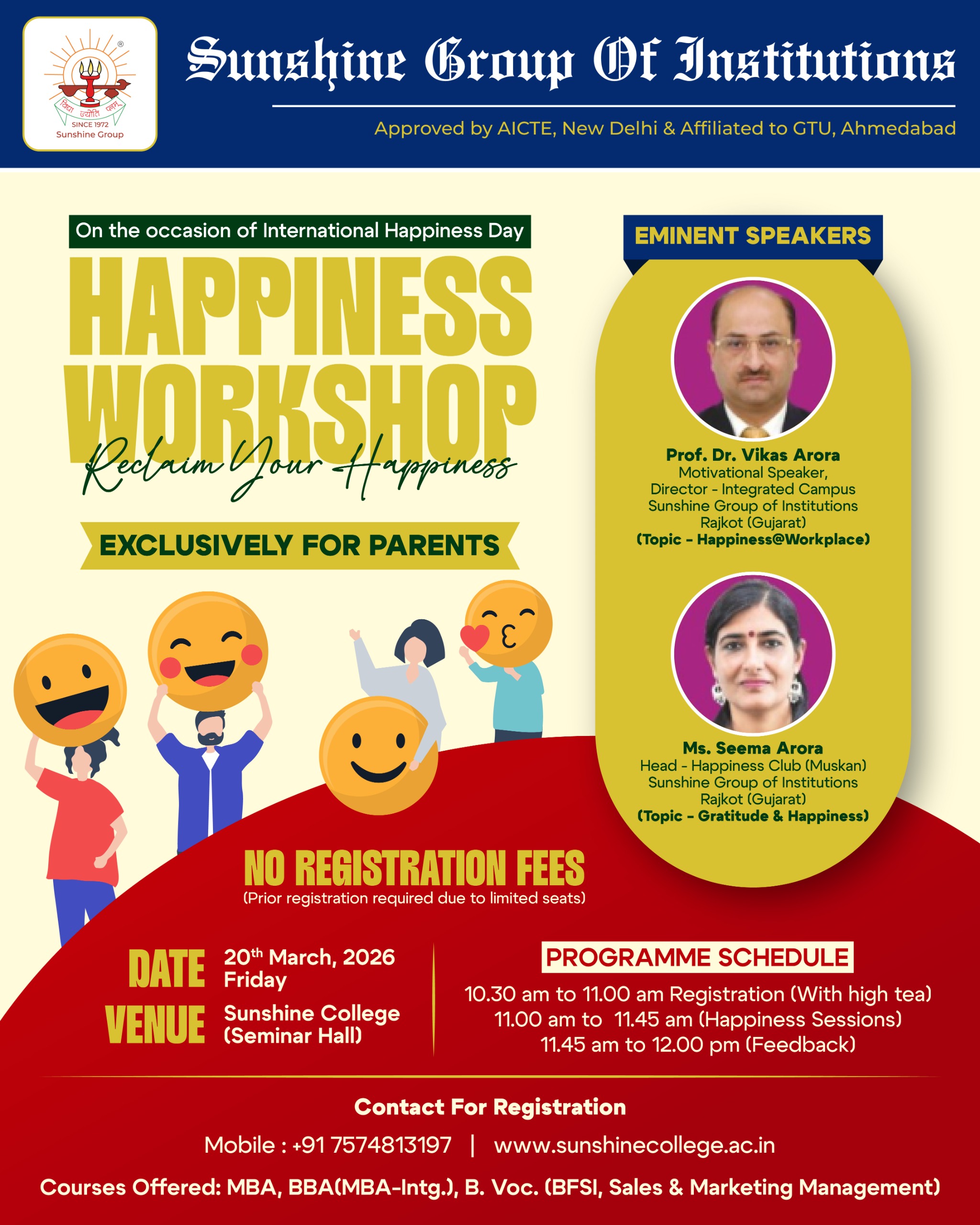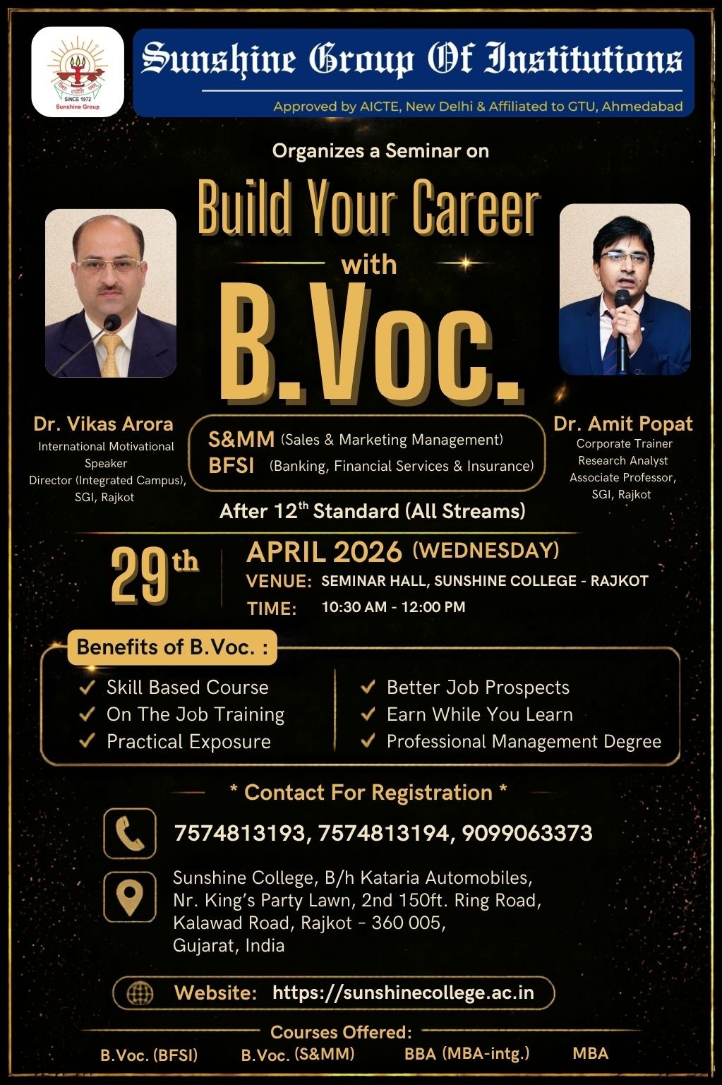 I feel Fortunate enough to have high level of professional education and learning from Sunshine Group of Institutions.I am very thankful to all the faculty members of SGI for their guidance and support.